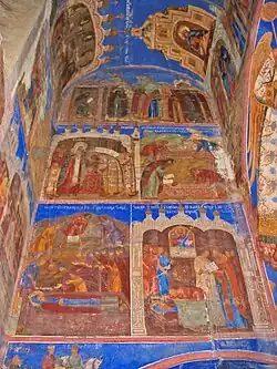 - Chrám Zesnutí přesvaté Bohorodice s jídelnou – vystavěn v poslední čtvrtině 16. století před chrámem Proměnění Páně, naproti zvonici. Ze západní strany k němu přimyká přídělek sv. Dioméda, z východní strany chrám přechází v dvoupodlažní budovu klášterní jídelny. Ve spodním patře bylo technické zázemí, nahoře samotná jídelna.