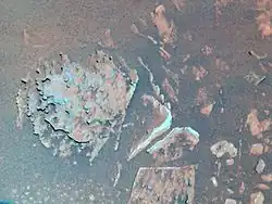 Kulatá a mělká díra na obrázku je výsledkem prvního broušení kamene na Marsu. 6. ledna bruska (Rock Abrasion Tool) na vozítku Spirit vybrousila plochu s průměrem 45,5 milimetrů na kameni zvaném Adirondack v průběhu 34. solu na Marsu. Materiál z 2,65 milimetrů hluboké díry byl podrobně prozkoumán mikroskopickým zobrazovačem a dvěma spektrometry na robotickém rameni. Tento obrázek pořídil Spirit panoramatickou kamerou, kvůli vizuální kontrole úspěšnosti broušení. Bruska pro obě dvě vozítka byla vyrobena firmou Honeybee Robotics z New Yorku.