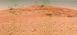 Vpravo je první barevný obrázek Marsu vytvořený panoramatickou kamerou vozítka Spirit. Je to obrázek s největším rozlišením jaký kdy byl pořízen z povrchu jiné planety. „Vidíme panoramatickou mozaiku složenou ze čtyřikrát tři obrázky kamery“, řekl designér kamery Jim Bell z Cornellu. Na tomto obrázku je 12 milionů bodů (4 000 × 3 000). Toto je však jen vrchol ledovce, protože tento obrázek, získaný 6. ledna 2004 je jen osmina z panoramatu pořízeného touto kamerou a není stereoskopický.
