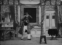 Muž položí na stoličku svůj deštník, který vzápětí uletí. Muž se rozčílí a položí na stoličku svůj klobouk. Kloubouk se začne hýbat a muž se rozhodne ho položit na stůl. Když si chce sundat kabát, objeví se čepice na hlavě. Když si chce sundat čepici, má náhle sobě kabát. Po několika pokusech sundat si čepici a kabát, se na konci zdá, že nad oblečením zvítězil. Ukáže prstem na oblečení a z plného hrdla se mu směje. V mžiku je však znovu oblečen a rozhořčeně kvůli tomu odchází.