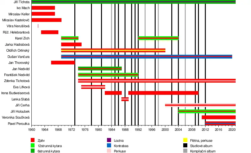 - Karel Zich – tenor, dvanáctistrunná kytara (1969–1974; 1993–2004)