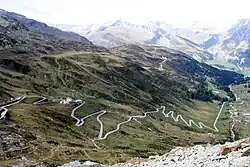 - Silnice přes průsmyk se skládá ze 75 serpentin; 52 z nich je na italské straně a 23 na švýcarské straně.