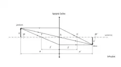 - Pokud je předmět ve vzdálenosti f, obraz nevzniká.