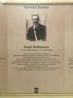 - ↑ CÍLEK, Václav; HARTL, Michal; SCHMELZOVÁ, Radka. Krásná černobílá Poldi. Josef Hoffmann, evropský architekt v Kladně. Kladno: Společnost Poldi Hütte, 2007. 55 s. S. 28–30.