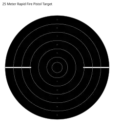 Závod: opět se střílí 6 sérií po pěti ranách s jednou nástřelnou položkou a minutou na nabíjení. V jedné sérii se otáčí terč v intervalech 7/3 sekundy (7 sekund zavřený – hranou směrem ke střelci, 3 sekundy otevřený – terč otočený na střelce). Během sedmisekundového intervalu musí mít střelec ruku v pohotovostní poloze (45°), nesmí s ní nijak hýbat ani ji pokládat. V okamžiku otočení terče musí střelec pokud možno co nejplynuleji vyjet na terč a spustit. Pokud je střelnice vybavena elektronickými terči (u nás pouze v Plzni), tak je otáčení terče nahrazeno červeným a zeleným světlem – červená zavřený, zelená otevřený.
