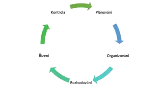 Tento koloběh činností se skládá z plánování, organizování, rozhodování, řízení a kontroly.[2]