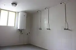 - Sprcha na pláži – pro ty, kdo se chtějí zbavit slané mořské vody nebo písku před vstupem do domu nebo do hotelu, je sprcha umístěná volně v prostoru, bez zástěn, často se studenou, neohřívanou vodou