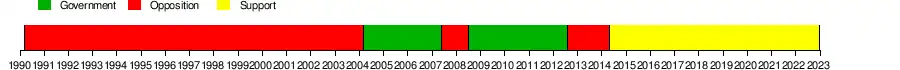 | Rok | Lídr | Počet hlasů | % | # | Mandáty | ± | Koalice | Postavení |