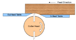 Stroj má dva stoly označované jako přední a zadní, minimálně přední stůl je výškově stavitelný, zpravidla však oba. Rovina zadního stolu musí být pro zajištění správné funkce tangenciálně k řezné kružnici nožového vřetena, rozdíl výšek obou stolů určuje úběr materiálu. Roviny obou stolů musí být spolu rovnoběžné.