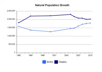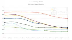 - ↑ CIA - The World Factbook -- Country Comparison :: Total fertility rate. web.archive.org [online]. 2009-10-28 [cit. 2024-03-28]. Dostupné v archivu pořízeném z originálu dne 2009-10-28.