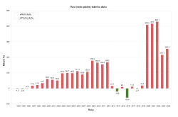 Inkrementální vývoj (růst či pokles) státního dluhu ČR v letech 1994–2024 (v mld. Kč)