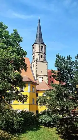 Budovy Státního okresního archivu Cheb - františkánský klášter s věží kostela Zvěstování Panny Marie -