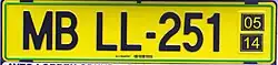 Vozidla určená k vývozu ze země dostávají žluté registrační značky. Jsou obdobné běžným značkám, na pravém okraji však mají dvě černá políčka s označením měsíce a roku platnosti. Do roku 2008 bylo na těchto tabulkách písmo červené.