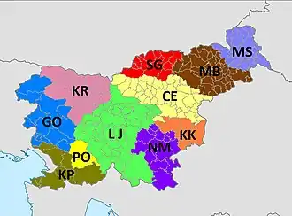 Systém označení vozidel podle okresů byl převzat z dob Jugoslávie. Původní jugoslávské okresy však po osamostatnění Slovinska zanikly a používají se tak pouze pro označení vozidel a ve struktuře slovinské policie.