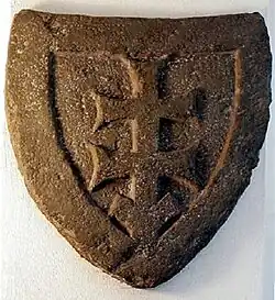 V průběhu staletí se ve znaku pod dvojkřížem objevily tři pahrbky, nejprve v jako trojité skály, později ve 14. století v podobě tří kopců, z nichž prostřední byl největší.