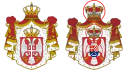 Zaprvé, Srbský znak zobrazoval klasickou srbskou heraldickou korunu, zatímco jugoslávský zobrazuje korunu tehdejší vládnoucí dynastie Karađorđevićů.