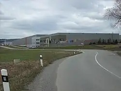 Vjezd do obce od Ždírce, na pozadí komplex průmyslové zóny | |