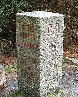 - Mittelpunkt Europas (Německo) tři metry od hranic s Českem nedaleko vrchu Dyleň