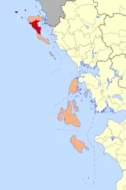 - Obecní jednotka Paleokastritsa (4068) – komunity: Lakones (624), Alimmatades (199), Gardelades (371), Doukades (721), Krini (292), Liapades (931), Makrades (331), Skripero (599).