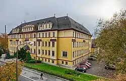 - 16. července 1874 položen základní kámen školy. Plány budovy vytvořil inženýr Theodor Reuter, který se stal prvním ředitelem školy.[4] [5]