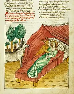 Scéna z rytířského románu Parzival Wolframa von Eschenbach, ilustrace v rukopise z roku 1467