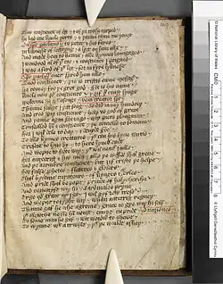 Na rozhraní středověku a renesance stojí Canterburské povídky (1387–1400) Geoffreye Chaucera, nejslavnějšího spisovatele středoanglického období. Celý závěr 14. století je vzhledem ke značnému vlivu této osobnosti označován za chaucerovské období. Zatímco sám Chaucer psal pouze anglicky a silně tento jazyk ovlivnil, jeho přítel John Gower byl autorem básní ve třech jazycích – známé je francouzské Zrcadlo člověka (Mirour de l'Omme), poslední velké dílo anglonormanštiny, latinský Hlas volajícího (Vox Clamantis) nebo anglicky psaná Milencova zpověď (Confessio Amantis). K Chaucerovým následovníkům patřil také Thomas Hocclerve nebo John Lydgate, tvořící již v 15. století.[65] Závěr anglického středověku je spojen s nástupem knihtisku, přičemž prvním anglickým tiskařem byl William Caxton. V roce 1476 zřídil tiskárnu ve Westminsteru a vytiskl v ní například Artušovu smrt (1485) Thomase Maloryho, prozaickou sbírku artušovských příběhů, kterou se dlouhá řada anglických středověkých rytířských románů symbolicky uzavřela.[66]