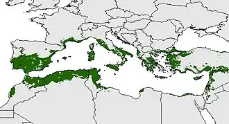 V Levantě těžili dřevo od 3. tisíciletí př. n. l. Féničané a vyváželi ho do Egypta a Mezopotámie. Jednalo se především o oblíbené cedrové dřevo. Řecko bylo výrazně odlesněno kolem roku 500 př. n. l. Zničení lesů vedlo k výrazné větrné a vodní erozi, což vedlo k rozsáhlému odplavení půdy, který bylo mimo jiné jedním z faktorů, které způsobily zanesení starověkých přístavů jako Efes, Théby nebo Athény.[2] V současnosti se zachovaly především na nedostupných místech jako jsou prudké svahy strží. Souvislé zachovalé stálezelené lesy lze stále nalézt například v katalánské oblasti Girona nebo na Krétě. Existují snahy o obnovení těchto porostů, ale zalesňování listnatými stromy je velmi složité. Úspěšnější je výsadba jehličnatých stromů, především borovicí halebskou.