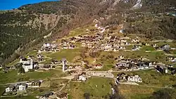 Součástí obce je osada Gspon, dostupná pouze lanovkou, ve které se nachází nejvýše v Evropě situovaný fotbalový stadion, Ottmar Hitzfeld Stadium. Hřiště se nachází ve výšce 2000 metrů nad mořem.[3][4] Své zápasy zde odehrává místní amatérský klub FC Gspon.