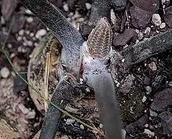 Kmeny jsou zcela podzemní a kořen má tvar řepy, s korálovitými kořeny typickými pro cykasy. Kmen se může větvit do řady růstových bodů a má zavalité, takřka hlízovité kořeny.