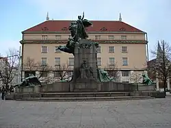 - Alegorické figury sedících žen na rizalitech Muzea východních Čech v Hradci Králové[13]