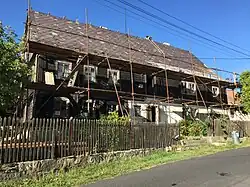 Jedná se o patrový, zčásti roubený dům na obdélném půdorysu s vykládaným štítem břidlicovými šablonami na jižní straně, bedněným štítem na severní straně a sedlovou střechou. Roubení je v prvním patře obloženo horizontálním šalováním. Přízemí je zčásti roubené se třemi oblouky podstávek.