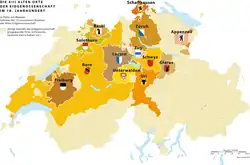 Územní struktura Staré švýcarské konfederace byla velice složitá. Vedle plnoprávných členů, jimiž byly kantony, zde byla spojenecká území (podobně jako kantony vedly samostatnou politiku, přičemž měly uzavřeny spojenecké dohody s jedním, či více kantony), několik patronátů (byly pod protektorátem spojeneckých území, či kantonů), celá řada společných panství (panství spravovaná více kantony) a několik poddanských území (území spravovaná kantonem), či spojeneckým územím.
