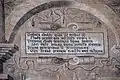 Pod iluzivním obloukem nad výjevem Úplatného soudce je umístěna tabulka vsazená do rollwerkového rámce se staročeským nápisem: