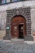 Stará radnice, Úplatný obhájce, detail nápisu v přízemí