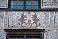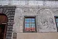 Stará radnice Prachatice – detaily fresek – alegorie – římsa – CARITAS -