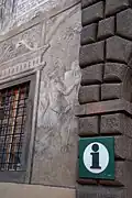 Renesanční malovaná výzdoba se dochovala téměř na celé ploše průčelí[11], pouze malby pokrývající fabiónovou římsu jsou rekonstrukcí z roku 1843[20][21], zhotovené podle původních maleb. Plocha fasády je členěna celkem do šesti horizontálních pásů, ukončených vždy na nárožích kamennou bosáží, která od prvního patra přechází na štukovou bosáž s rostlinným dekorem.