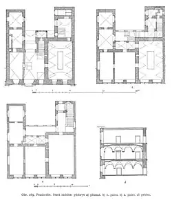 - ↑ a b c MAREŠ, František; SEDLÁČEK, Jan. Soupis památek historických a uměleckých v království Českém, Politický okres prachatický (1913), svazek 38. 1. vyd. Praha: Archaeologická komisse při České akademii císaře Františka Josefa pro vědy, slovesnost a umění, 1913. 388 s. (Soupis památek uměleckých a historických od pravěku do polovice XIX. století; sv. Soupis památek, 38. Politický okres prachatický (1913)). Dostupné v archivu pořízeném dne 2019-04-02. Kapitola Prachatice, s. 247–256. [Dále jen: MAREŠ, SEDLÁČEK].