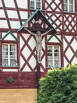 Jedná se o jednopatrovou hrázděnou budovu egerlandského stylu na obdélném půdorysu. Sedlová střecha je šindelová s vikýři, sloupová zvonička nad průčelím je završena zvonovitou bání. Na hrázděném průčelí je umístěn dřevěný kříž s Kristem, který byl původně komponovaný se sochou Panny Marie. V místnosti v přední části budovy u uličního průčelí bývala místnost zařízená jako muzeum v podobě selské jizby v egerlandském duchu s ukázkami lidového umění a výroby z oblasti západočeského lázeňského trojúhelníku.[2][5]