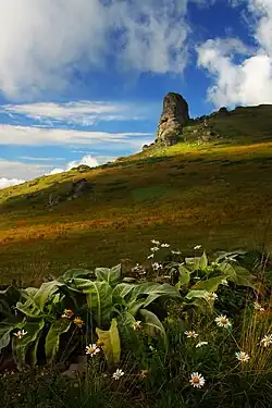 Horské ekosystémy jsou rozmanité a zahrnují několik rostlinných společenstev: lesy, křoviny, louky, pastviny a rašeliniště. V parku se nachází šest různých vegetačních pásem: Dubové, bukové, smrkové, subalpínské pásmo keřové vegetace přesličky rolní, borůvčí, subalpínské smrčiny a borovice kleče. Mezi další rostliny patří keřová olšina, stepní dub pýřitý, ale také vzácné a ohrožené druhy, jako je například koniklec německý, hlaváček jarní, pivoňka balkánská, rosnatka okrouhlolistá, javor Acer heldreichii, lilie zlatohlavá, kosatec nízký a orchideje rodu prstnatec.[45] Celkem se zde vyskytuje 1 190 druhů rostlin, včetně místního endemitu křídlatého zvonku (Campanula calyciliata) a starčeku pančického (Senecio pancicii), které se vyskytují pouze v tomto pohoří. Na lokalitách Jabučko Ravnište, Babin Zub a Arbinje se nacházejí také společenstva horských rašelinišť se slatinnými rašeliníky,[44] za léčivé nebo aromatické se považuje asi 350 druhů bylin. V roce 2022 bylo provedeno několik nezávislých průzkumů různých univerzit a ústavů s cílem všechny je sepsat, posílit jejich ochranu a ověřit možnosti potenciální plantážní produkce. Rozsáhlé oblasti jižně a jihovýchodně od pohoří jsou již přeměněny na plantáže aromatických bylin, zejména celé svahy okolních hor jsou osázeny levandulí.[47]
