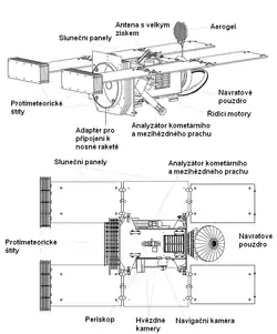 - sběrač meziplanetárního a mezihvězdného prachu tvořený 132 bloky aerogelu o rozměrech 20×40×10 mm v hliníkových nosičích, s celkovou aktivní plochou 1050 cm2;