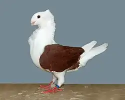 Hrubé vady: Dlouhé, úzké tělo, slabý, dlouhý krk, příliš dlouhé nebo krátké nohy, opeřené nohy; široká, hranatá, krátká, nebo propadlá hlava, namodralé nebo červené obočnice, krátký, dlouhý, nebo nečistý zobák, jiná než vysoko nasazená chocholka; malá náprsenka, méně než 7 a více než 12 bílých letek, silně probarvené bérce, barevné peří v bílém opeření, vadná barva štítu a pruhů, náznak 3 pruhu.[3]