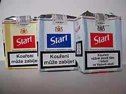 - ↑ O české cigarety není zájem, některé druhy Petra a Start končí. e15.cz [online]. [cit. 2024-04-22]. Dostupné online.
