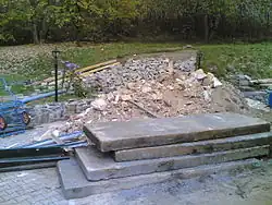 Jako sutiny jsou také označovány pozůstatky po zřícené nebo zbourané budově či jiném objektu. Suťovým kuželem je v archeologii označován terénní útvar v podobě pahorku na místě zaniklé stavby, vzniklý ze stavebního materiálu zřícené stavby.