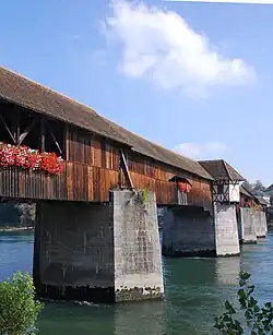 Přes Rýn vedou do Bad Säckingenu dva mosty: jednak dřevěný most Säckingen, nejstarší a nejdelší krytý dřevěný most v Evropě (dnes přístupný pouze pro pěší a cyklisty), jednak most Fridolinsbrücke pro motorovou dopravu.