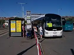 Autobus na lince Praha–Vimperk, zachycen v pražském terminálu Na Knížecí v létě 2013