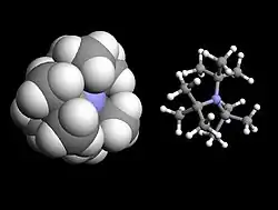 Tricyklohexylfosfin, fosfinový ligand používaný v homogenní katalýze a s tris(pentafluorofenyl)boranem vytvářející frustrovaný Lewisův pár.[6] -