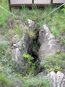 Jeden z průduchů jeskyně Sterkfontein, který se může stát smrtelnou pastí