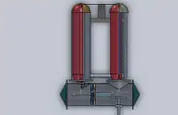 Následující obrázek nezobrazuje vnitřní tepelné výměníky a regenerátor, které mohou být umístěny na potrubí kolem přehaněče. Regenerátor může být také umístěn v pístu přehaněče.