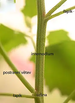 Z uzlin vyrůstají řapíky listů a postranní větve