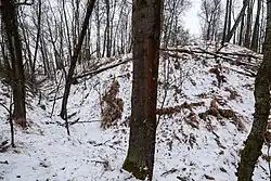 Lokalita má pravidelný čtverhranný půdorys obehnaný částečně zavodněným příkopem. Akropoli o rozměrech 30 × 30 metrů chrání mohutný val. Celkový charakter lokality a absence pozůstatků kamenných zdí nebo hradeb naznačuje, že zde stávalo malé hradiště.[3] Naopak proti tomu svědčí jeho malé rozměry a pravidelný půdorys.[4]